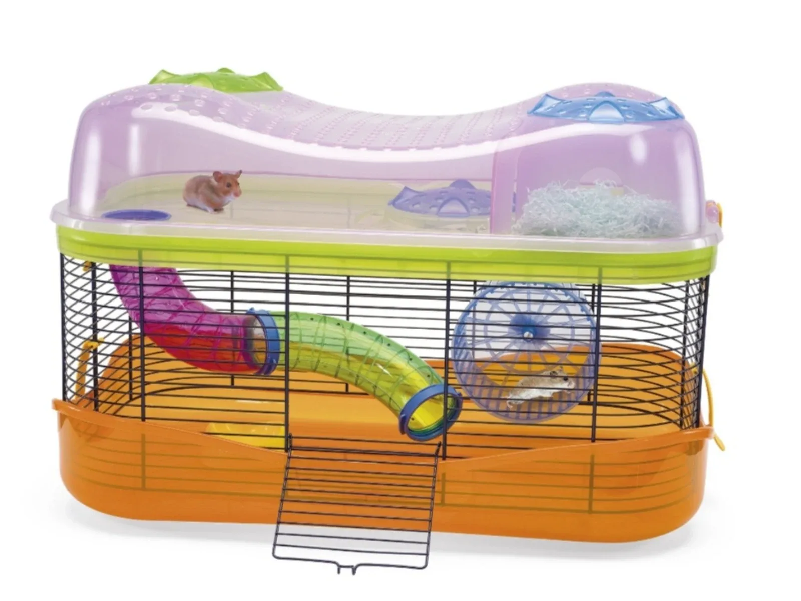 Savršen smještaj za male glodavce, FANTASY ima strukturu u obojenoj mreži, dno, policu i pokrov u poluprozirnoj plastici s ventilacijskim rupama, uklonjive čepove za dnevno rukovanje i unutarnju kućicu za trenutke odmora malog hrčka. Kompletan kavez s osnovnim priborom kako bi se stvorilo savršeno okruženje: plastična kućica i .zdjelica, kolut i tunel