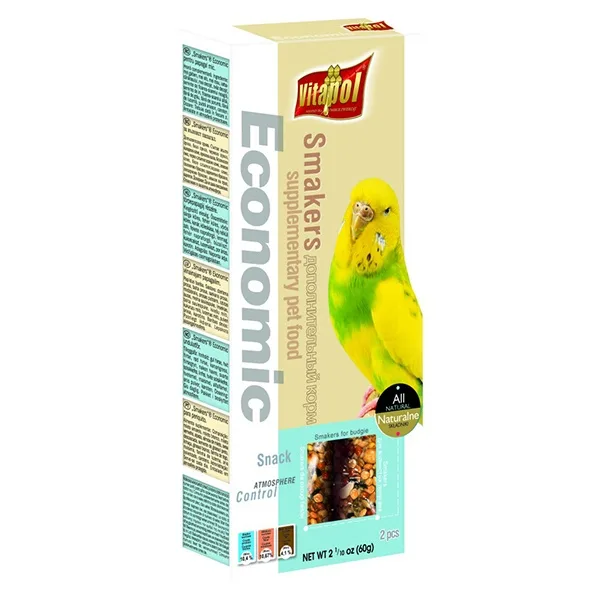 Smakers® iz linije Economic može dopuniti prehranu vrijednim sjemenkama i žitaricama neophodnim za pravilnu prehranu ptica. Ptice moraju uložiti malo truda kako bi skinuli sastojke sa štapića, što im je dobra zabava, a u isto vrijeme izvrsna vježba koja ih održava u dobrom fizičkom stanju.