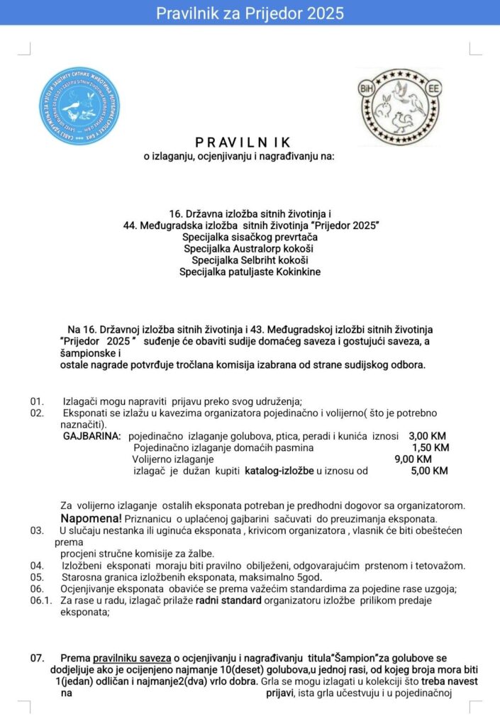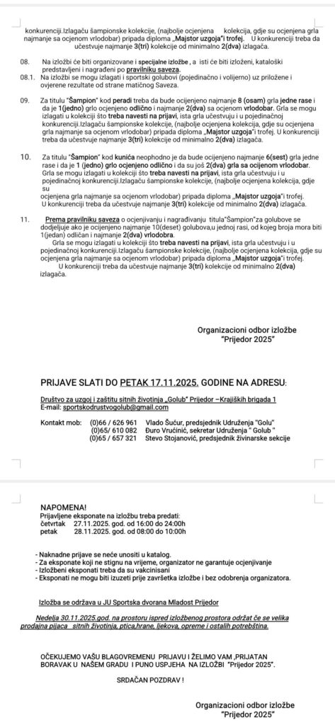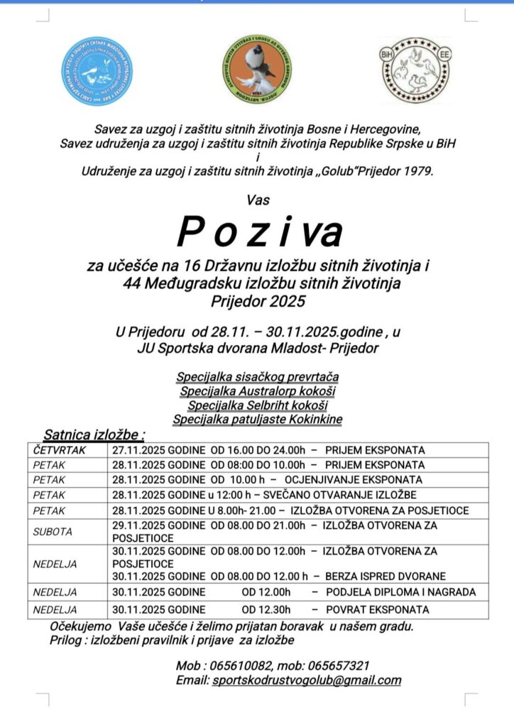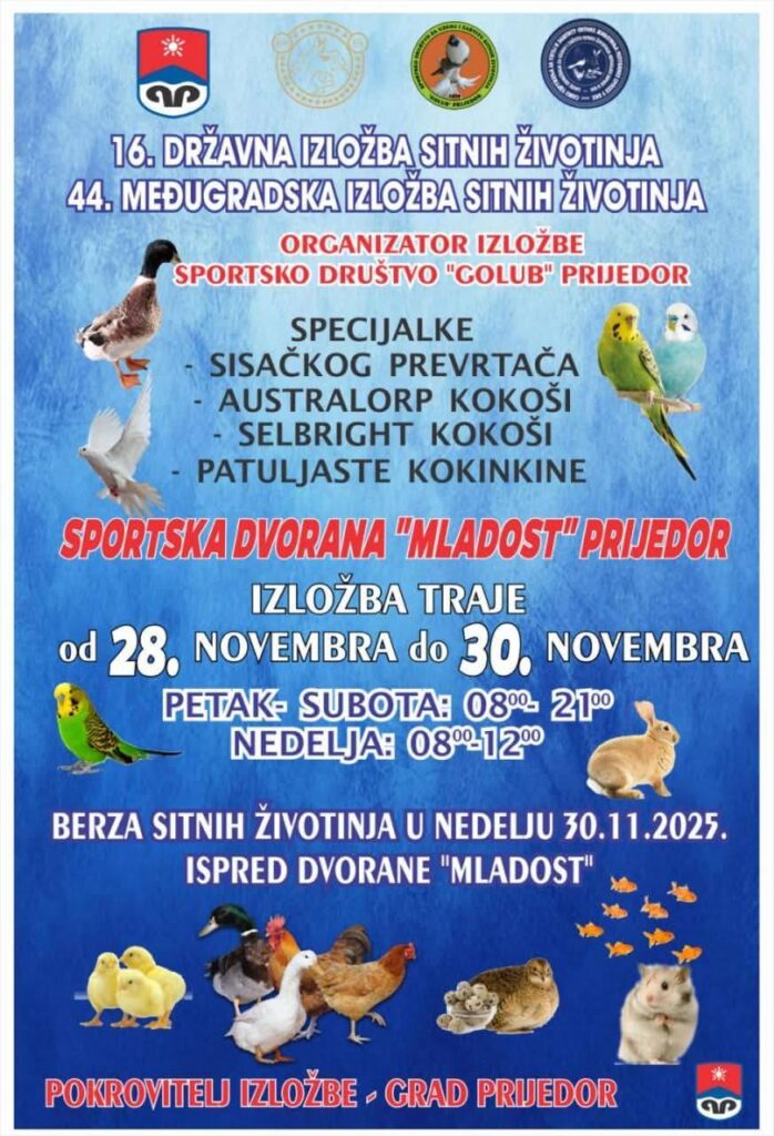Udruženje „Golub“ Prijedor organizuje 16. državnu i 44. međugradsku izložbu sitnih životinja.
